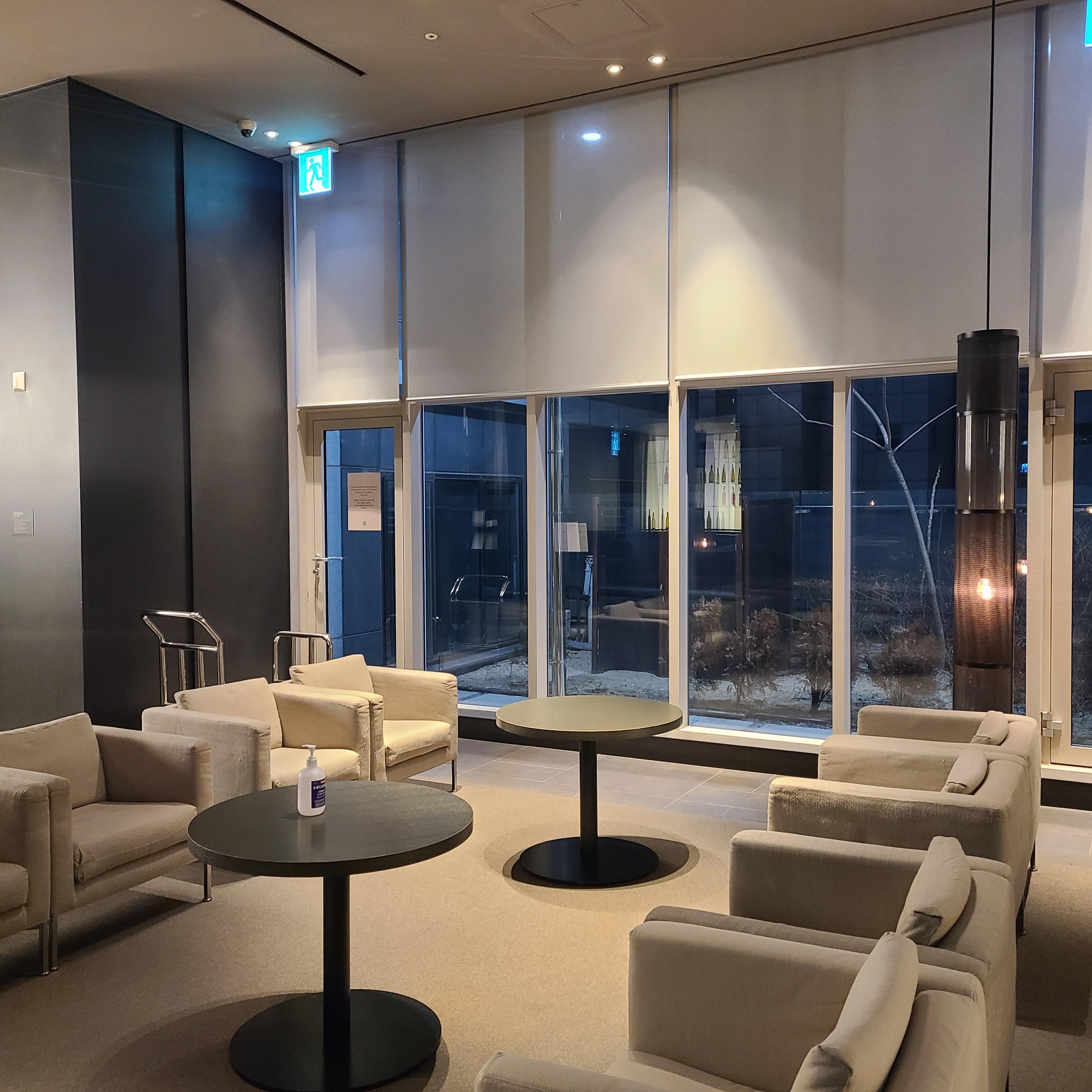 엘리베이터를 타고 8층으로 나오니 탁 트인 뷰와함께 포근한 느낌의 로비를 마주할 수 있었는데요. 겨울의 감성에 딱 잘어울리는 조명과 포근함이였어요.
